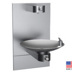 Standard Features: Vandal proof 14 gauge stainless steel bottle filler, mounted on 3/8″ steel mounting tongue above lower bowl; soft touch button with set screw for security; matching bottom plate secured with “snake eye” screws