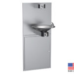 Standard Features: Vandal proof 14 gauge stainless steel bottle filler, mounted on 3/8″ steel mounting tongue above lower bowl; soft touch button with set screw for security; matching bottom plate secured with “snake eye” screws