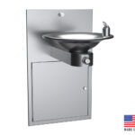 El modelo 107-14-TM de Filtrine combina la clásica fuente Filtrine 107-14 con el purificador de agua Taste Master® en el gabinete en la pared de abajo. Fabricada en su elección de acero inoxidable calibre 16 o bronce, con brazos de soporte calibre 14, la fuente cuenta con un solo tazón. El purificador de agua Taste Master® con elemento de bloque de carbón de 0.5 micrones elimina el plomo, las partículas, los sabores, los olores y los patógenos transmitidos por el agua. La puerta con cerradura a juego proporciona acceso al purificador y seguridad. Duraderas y hermosas, estas fuentes están disponibles en una amplia gama de acabados y opciones, incluido "Manos libres".